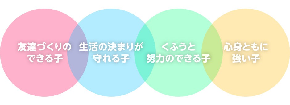 幼児教育の目標は、人間形成の基礎基本を培うことにあります。 本学園では、「明るく強い子の育成」を教育基本目標にしています。 子どもたちは、無限の可能性をもっています。そして、その可能性を十分に引き出してあげる環境をつくることが必要です。