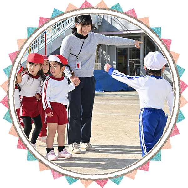 人間形成において、きわめて大切なこの時期に、集団生活の中で様々な体験やコミュニケーションを通じて、園児たちが協調性や自主性、創造性、感性が豊かに育つような環境づくりを常に大切にし、より多くのことを経験することによって、園児が一つでも多く、好きなとこ、一つでも多く、得意なことを自分自身で見出し、自分自身に自信がもてるような環境づくりをし活動しております。 そして、園児たち同士、お互いに認め励まし合いながら、集団生活の楽しさ、お友達の大切さを感じ、日々、成長してくれます。